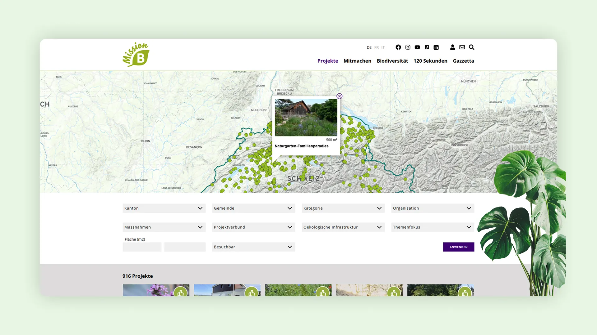 A nationwide biodiversity initiative platform connecting Swiss citizens to register and track biodiversity areas,…